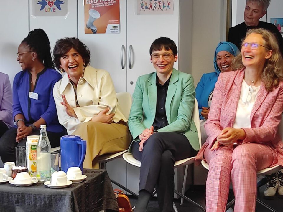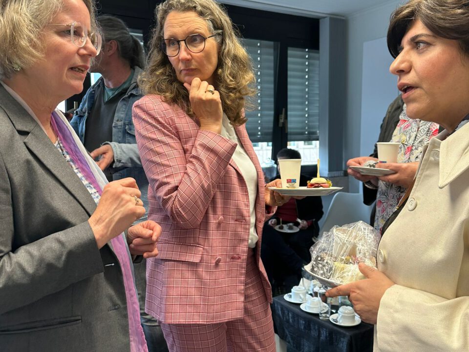 Es war uns eine große Ehre, am 10. Mai 2023 Besuch aus der Landesregierung Düsseldorf empfangen zu dürfen: Berivan Aymaz, Vizepräsidentin des Landtags, Josefine Paul, Ministerin für Kinder, Jugend, Familie, Gleichstellung, Flucht und Integration des Landes Nordrhein-Westfalen, und Landtagsabgeordnete Antje Grothus hatten sich auf den Weg nach Düren gemacht, um sich über das Migrantinnen-Netzwerk gegen häusliche Gewalt zu informieren.