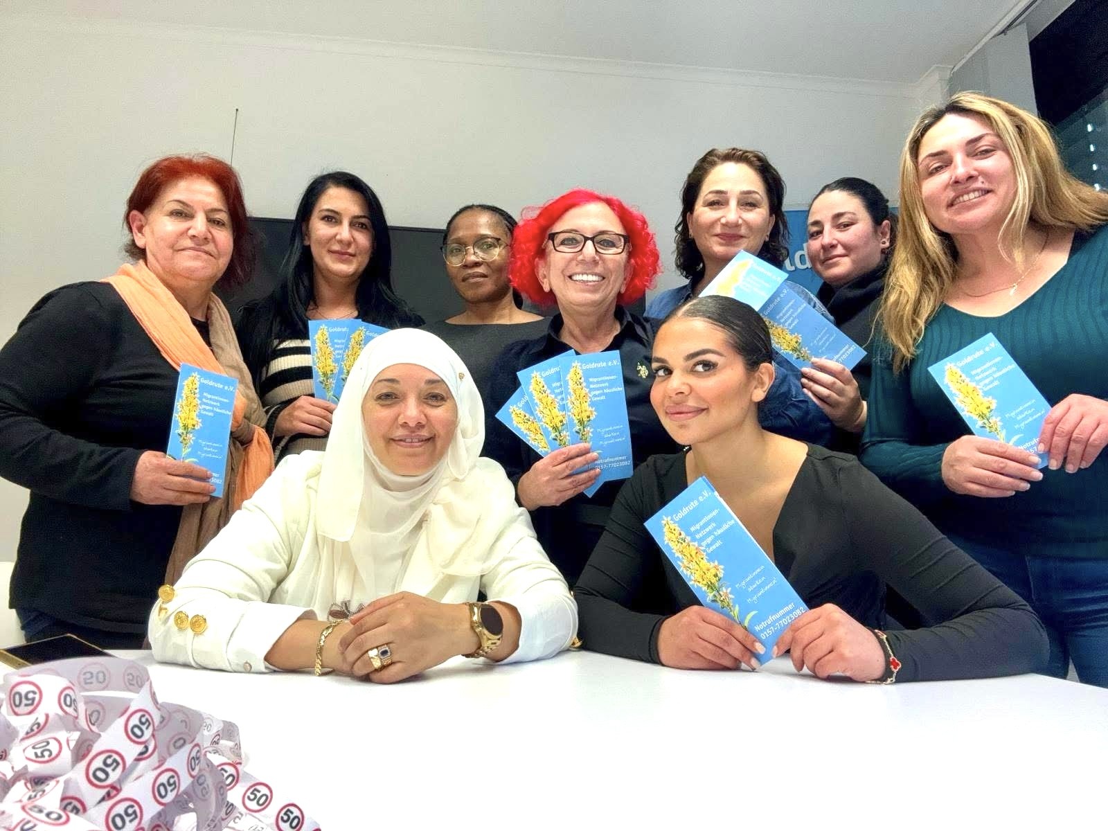 Zweite Reihe von links nach rechts: Roonak Aziz, Züleyha Essiz, Christina Evina, Nursen Sahin-Schulze, Ipek Alkac und Arzu Avci